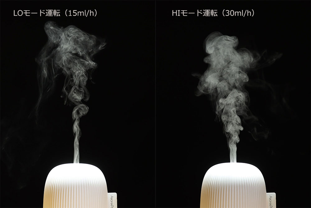ミスト量はLO(15ml)とHI(30ml)の2段階に調節が出来ます。